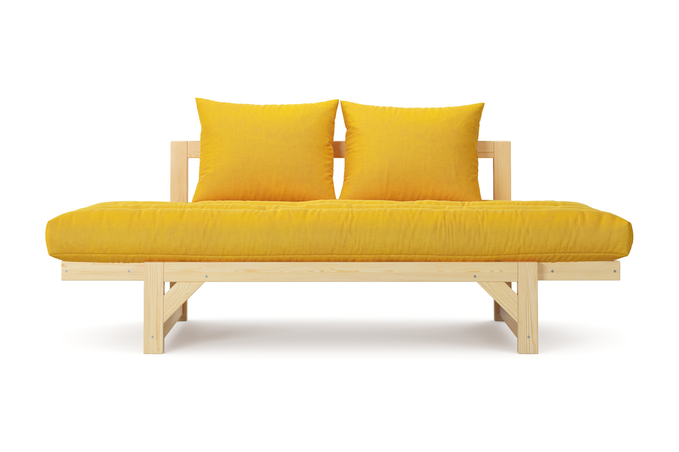 Максимальная нагрузка — 220 кг. Ширина деревянной спинки 130 см. Приспинные подушки, представленные на фото, входят в комплект. Декоративные приобретаются отдельно. Диван продается без лакокрасочного покрытия, под самостоятельную покраску. Высота сиденья без матраса - 31 см, с матрасом 46 см.